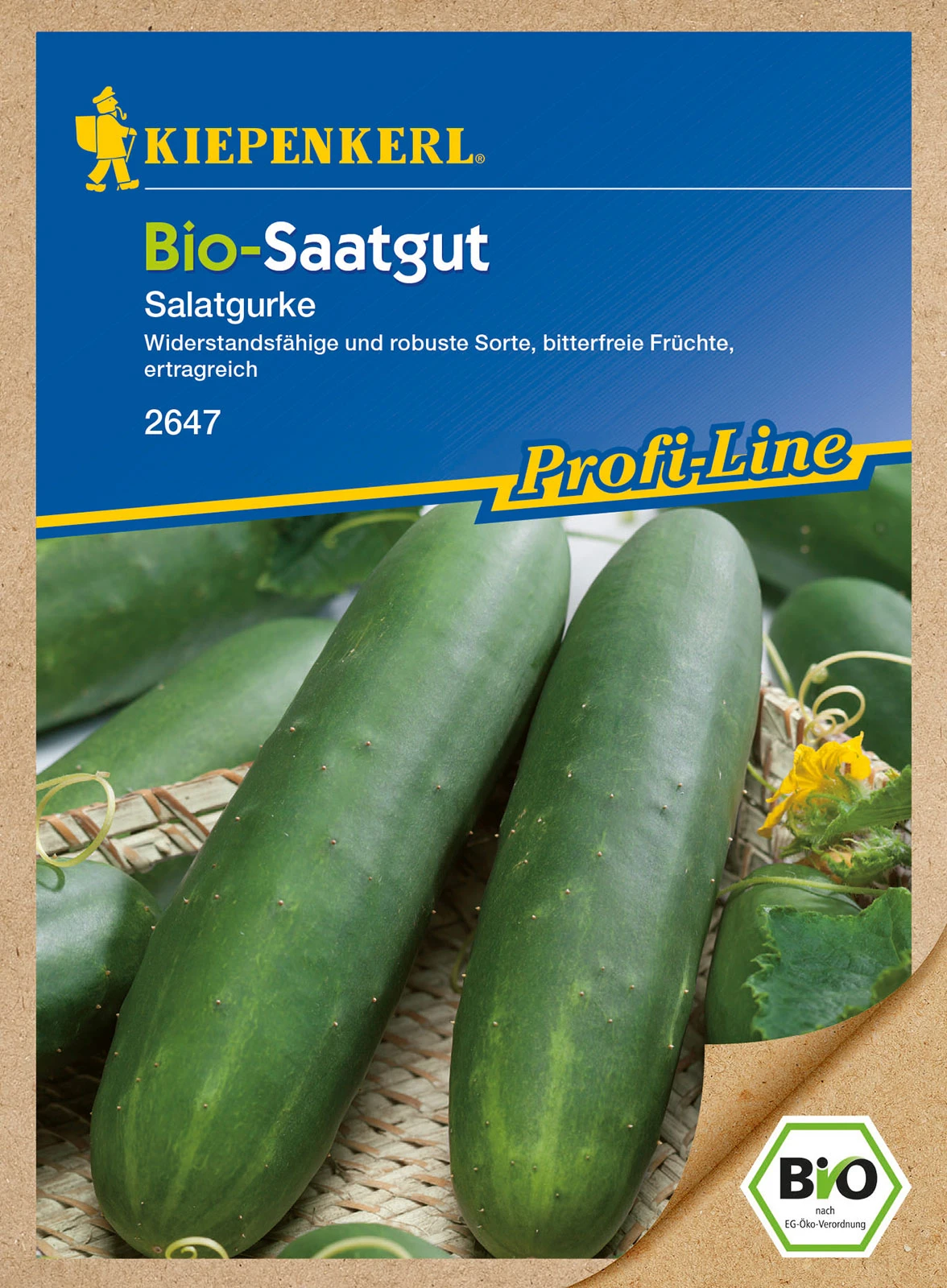 Robuste, gesunde Freiland- und Kastengurke mit bitterfreien ca. 35 cm langen, dunkelgrünen Früchten. Vielseitig verwendtbare Salatgurke. Gemischtblühend.