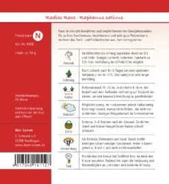 Ab Anfang Juli bis Ende September breitwürfig oder in Reihen direkt an Ort und Stelle. Saatgut nur leicht bedecken. Saattiefe ca. 1–2cm.
